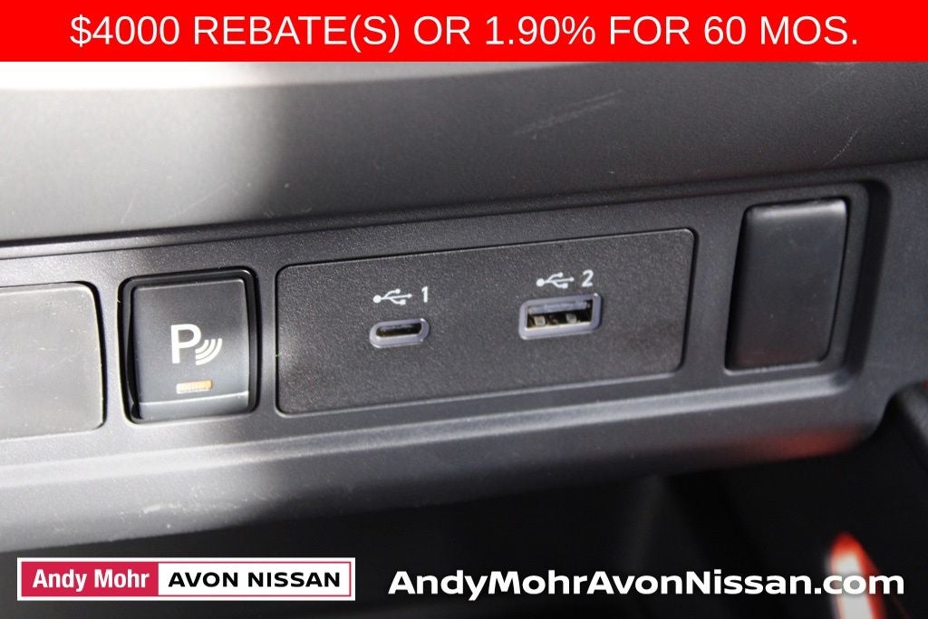 - Radio: SXM/AM/FM/AUX/USB Audio System -inc: 6 speakers, 12.3" color touch-screen display, wireless Apple CarPlay, wireless Android Auto, Bluetooth® hands-free phone system and streaming (audio or text message), voice recognition for audio features, Siri Eyes Free, NissanConnect services, Wi-Fi hotspot, 1 USB-A and 1 USB-C front ports and SiriusXM radio w/advanced audio features