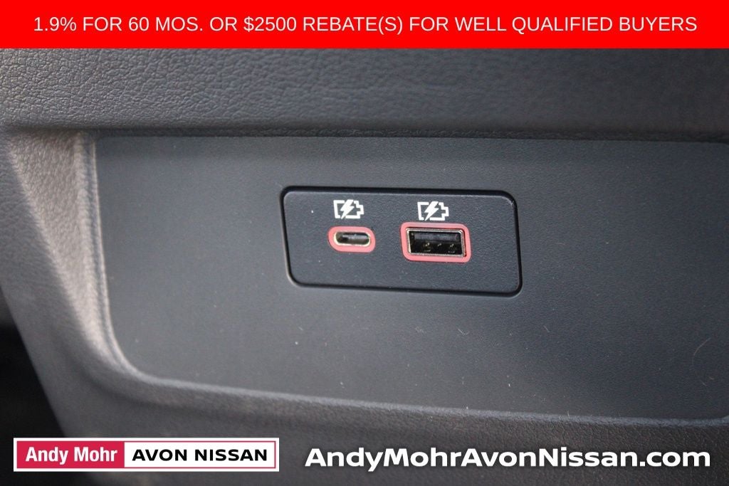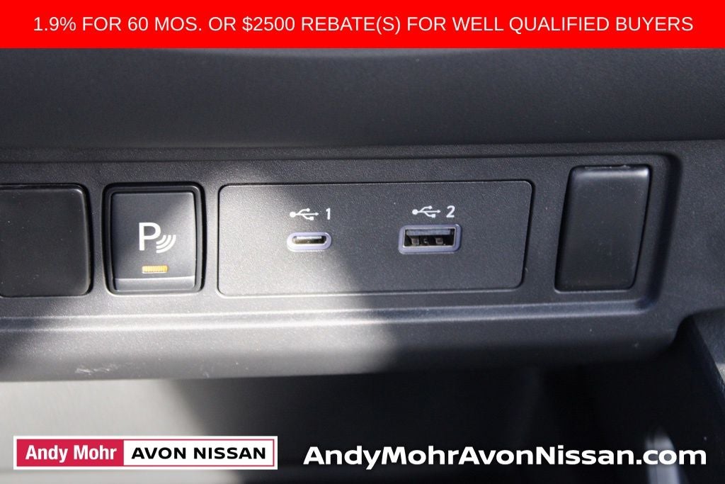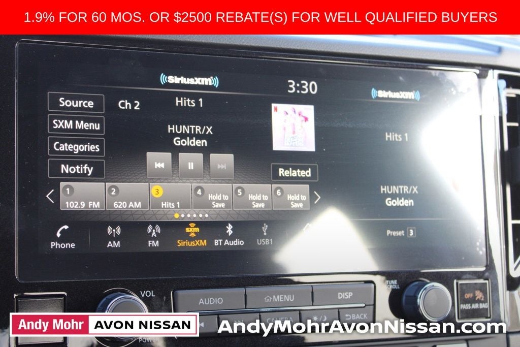 - Radio: SXM/AM/FM/AUX/USB Audio System -inc: 6 speakers, 12.3" color touch-screen display, wireless Apple CarPlay, wireless Android Auto, Bluetooth® hands-free phone system and streaming (audio or text message), voice recognition for audio features, Siri Eyes Free, NissanConnect services, Wi-Fi hotspot, 1 USB-A and 1 USB-C front ports and SiriusXM radio w/advanced audio features
