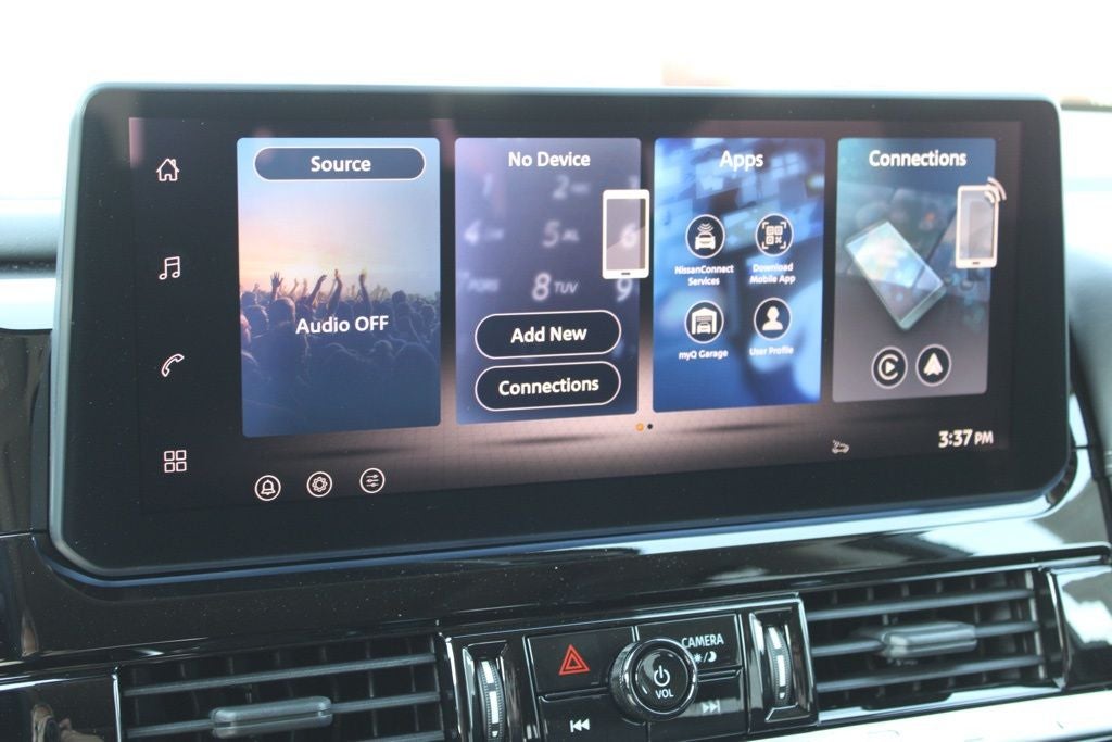 - Radio: AM/FM Audio System w/NissanConnect -inc: 5G Wi-Fi hotspot, wireless Apple CarPlay and Android Auto, 12.3" multi-function information display, SiriusXM satellite radio, 2 front USB connection (1 type C charge and data ports), Bluetooth® hands-free phone system, streaming audio and messaging and hands-free text messaging assistant