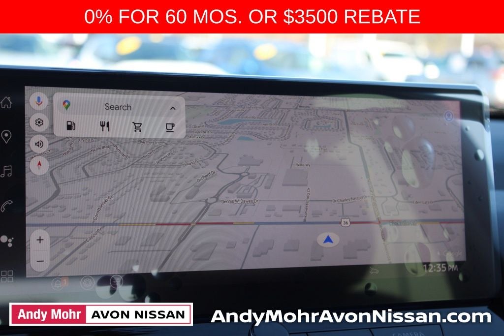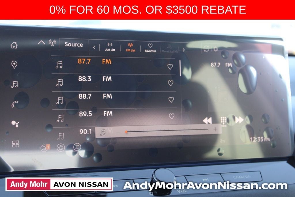 - Radio: AM/FM NissanConnect w/Navigation -inc: SiriusXM 360L, hybrid radio, enhanced voice recognition (one shot VDE, natural language understanding), Active Noise Cancellation, wireless Apple CarPlay, wireless Android Auto, 12.3" color HD display, Bluetooth®, 2 front USB type-C, Wi-Fi hotspot, Alexa Built-In, Google built-in: Google Assistant, Play Store, maps, data, NissanConnect Services powered by SiriusXM, SiriusXM Traffic and SiriusXM Travel Link