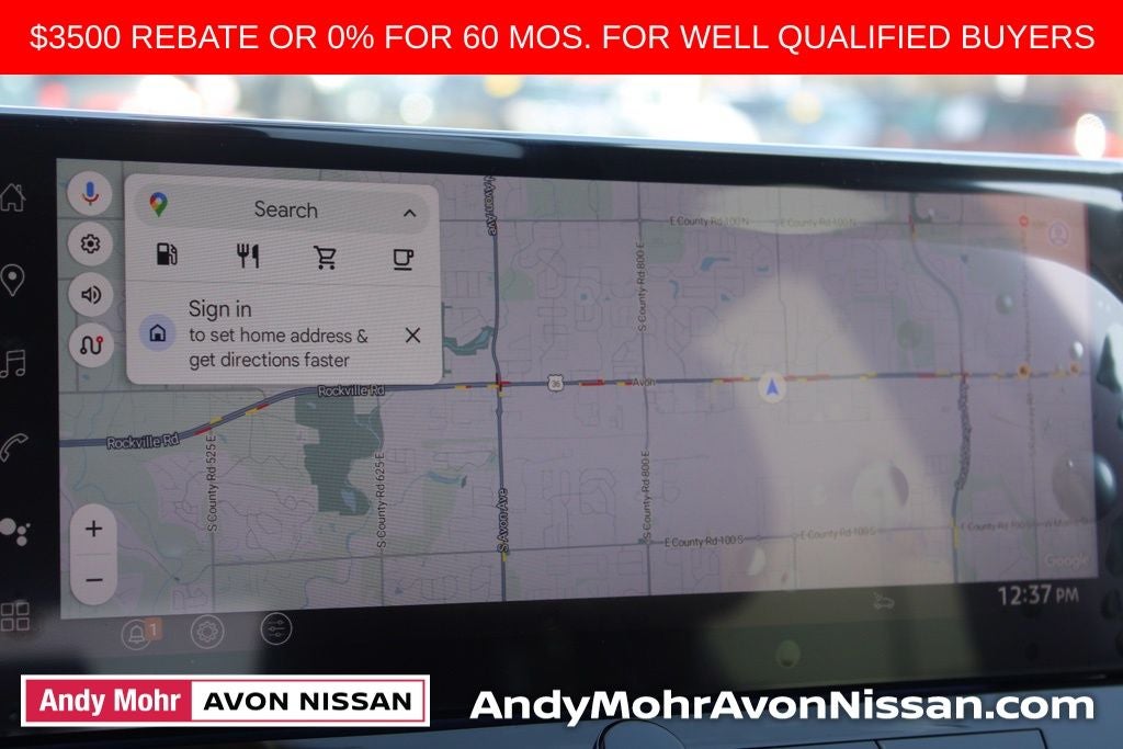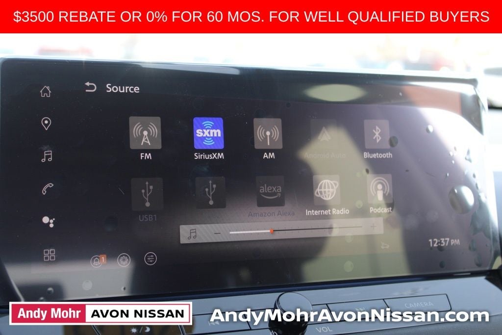 - Radio: AM/FM NissanConnect w/Navigation -inc: SiriusXM 360L, hybrid radio, enhanced voice recognition (one shot VDE, natural language understanding), Active Noise Cancellation, wireless Apple CarPlay, wireless Android Auto, 12.3" color HD display, Bluetooth®, 2 front USB type-C, Wi-Fi hotspot, Alexa Built-In, Google built-in: Google Assistant, Play Store, maps, data, NissanConnect Services powered by SiriusXM, SiriusXM Traffic and SiriusXM Travel Link