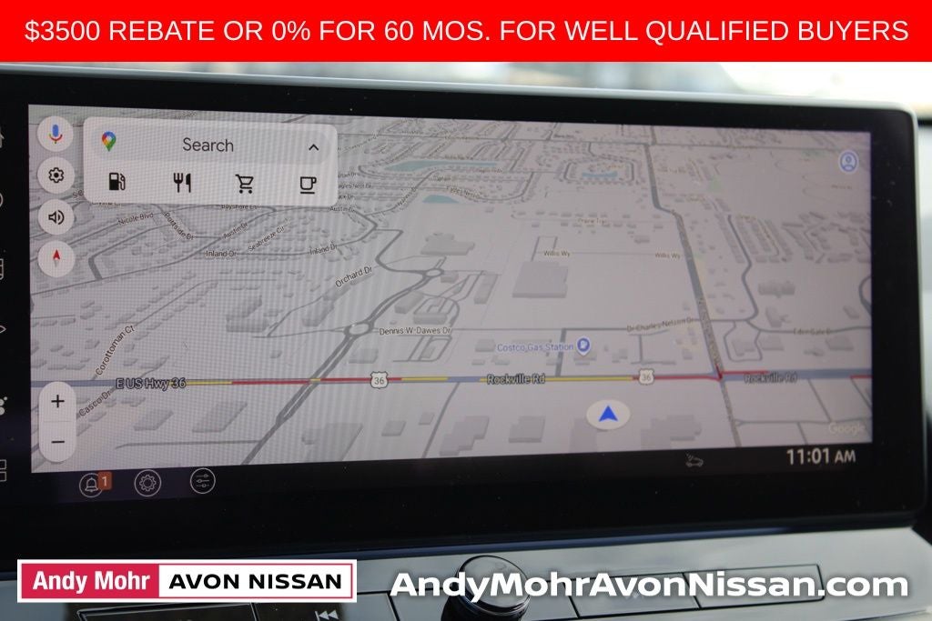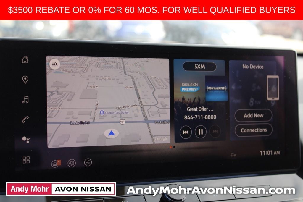 - Radio: AM/FM NissanConnect w/Navigation -inc: SiriusXM 360L, hybrid radio, enhanced voice recognition (one shot VDE, natural language understanding), Active Noise Cancellation, wireless Apple CarPlay, wireless Android Auto, 12.3" color HD display, Bluetooth®, 2 front USB type-C, Wi-Fi hotspot, Alexa Built-In, Google built-in: Google Assistant, Play Store, maps, data, NissanConnect Services powered by SiriusXM, SiriusXM Traffic and SiriusXM Travel Link