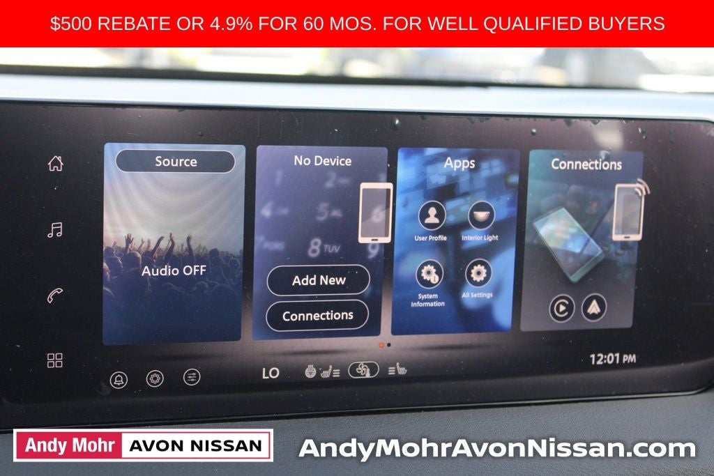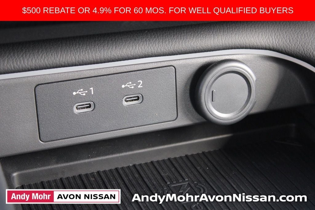 - Radio: AM/FM w/RDS/MP3 -inc: 4 speakers, 12.3" NissanConnect multimedia center display, Bluetooth® hands-free phone system, streaming audio via Bluetooth®, hands-free text messaging assistant, Siri Eyes Free, Google Assistant voice recognition, wireless Apple CarPlay and Android Auto and (2) front USB connection port (type C)