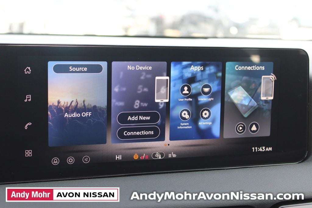 - Radio: AM/FM w/RDS/MP3 -inc: 4 speakers, 12.3" NissanConnect multimedia center display, Bluetooth® hands-free phone system, streaming audio via Bluetooth®, hands-free text messaging assistant, Siri Eyes Free, Google Assistant voice recognition, wireless Apple CarPlay and Android Auto and (2) front USB connection port (type C)