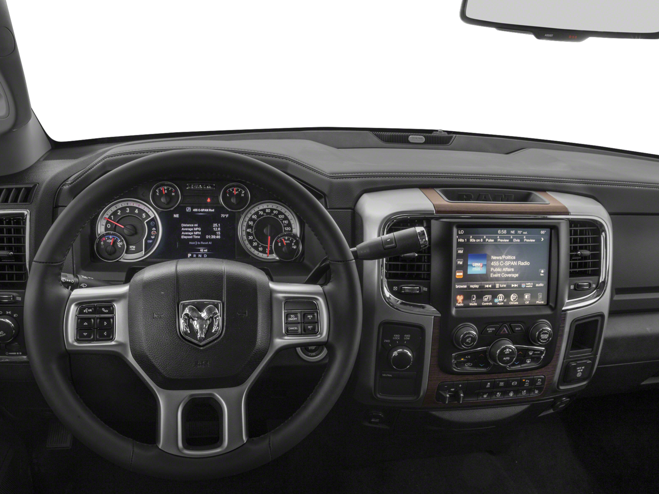 This Laramie trim level also boasts a wealth of premium amenities, such as the Convenience Group with rain-sensing wipers and auto high-beam control, an Anti-Spin Differential Rear Axle, and a Power Folding Chrome Trailer Tow Mirror system. The interior is equally impressive, with luxurious leather-trimmed bucket seats, a full-length upgraded floor console, and a state-of-the-art Uconnect 3C Nav system with an 8.4-inch touchscreen display.