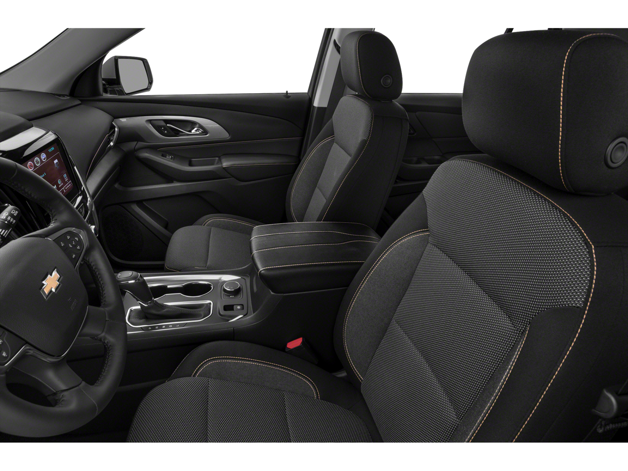 The Traverse's spacious interior offers seating for up to seven passengers, with the versatility of split-folding second and third-row seats. Enjoy the added convenience of the available power liftgate, universal home remote, and heavy-duty cooling system for towing.