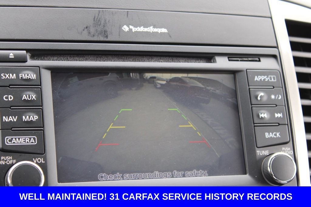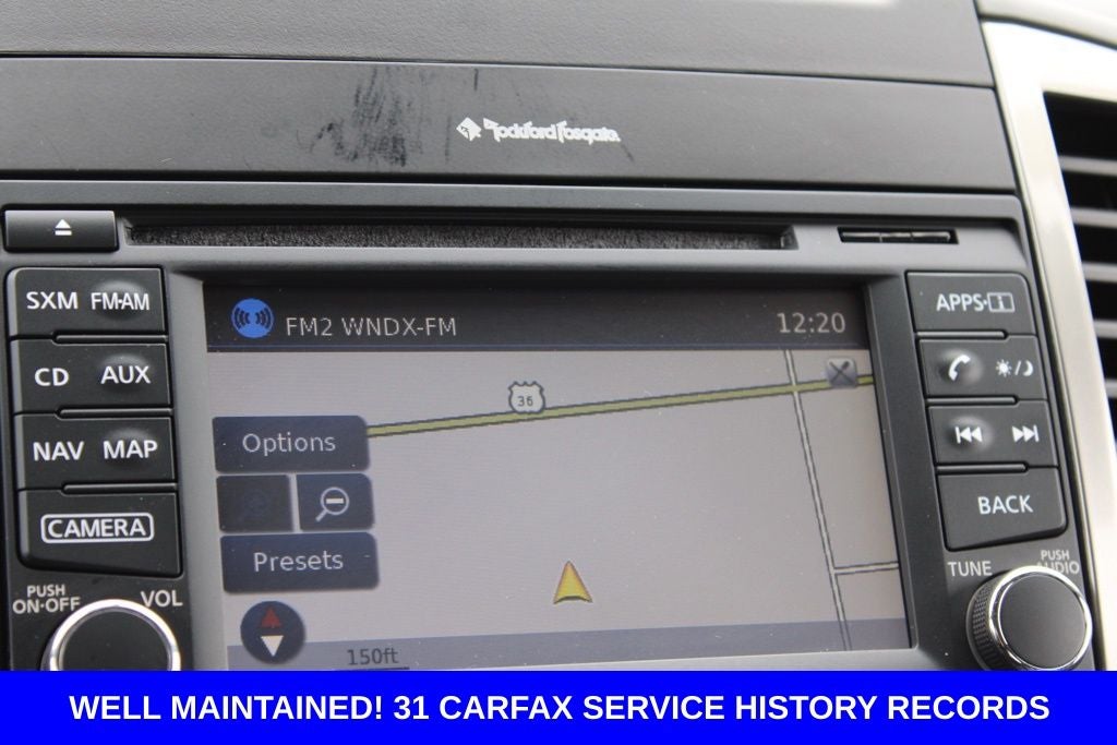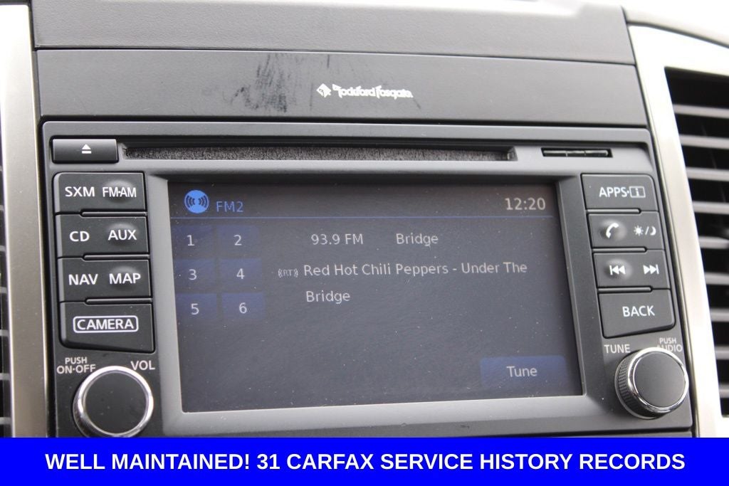 - Radio: Rockford Fosgate Premium Audio System -inc: CD player, 10 speakers w/subwoofer, NissanConnect w/navigation, 5.8" color touch screen display, Nissan Navigation System w/voice guidance, Nissan voice recognition for navigation and audio, SiriusXM satellite radio, SiriusXM traffic, SiriusXM travel link (fuel prices, weather, movie listings, stock info and sports), auxiliary input, steering wheel audio controls, USB connection port for iPod Interface and other compatible devices, streaming audio via Bluetooth®, Bluetooth® hands-free phone system, Siri Eyes Free and hands-free text messaging assistant