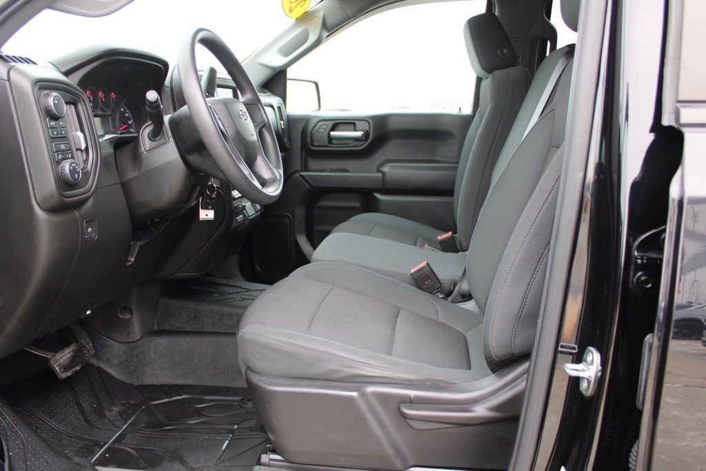 Inside, the Silverado's cabin is designed for both comfort and convenience. Enjoy the convenience of the Chevrolet Infotainment 3 system, which seamlessly integrates with your smartphone via Apple CarPlay and Android Auto. The power windows, remote keyless entry, and electronic cruise control add to the overall driving experience.
