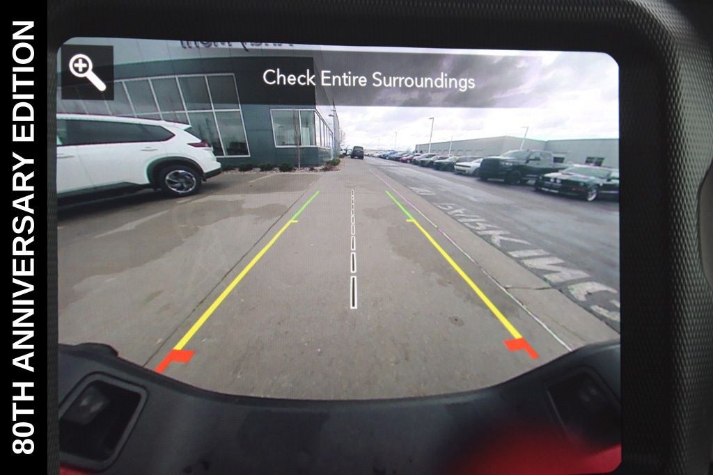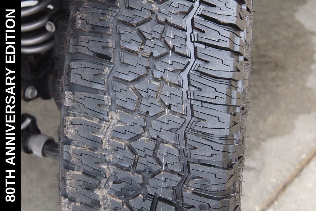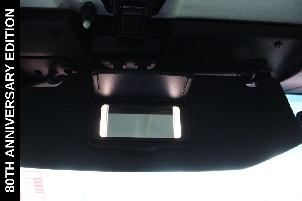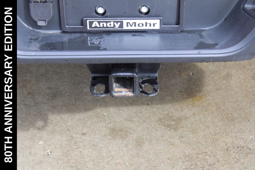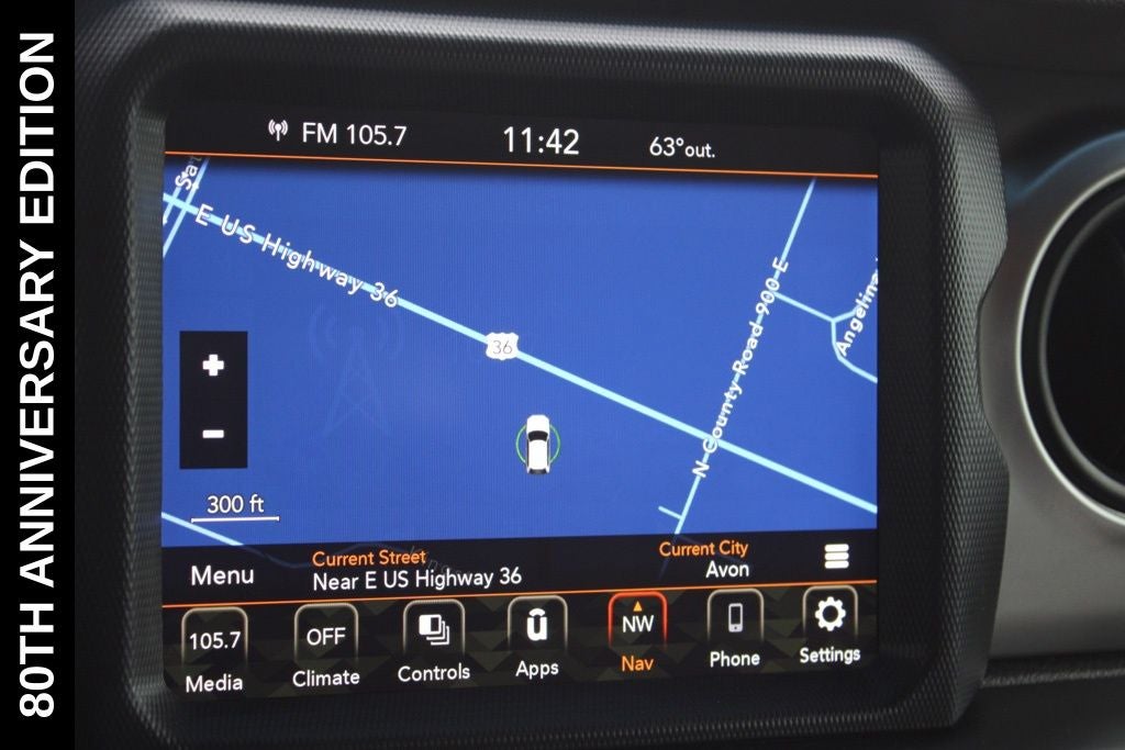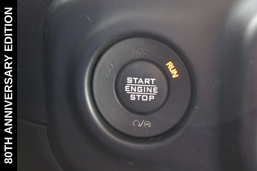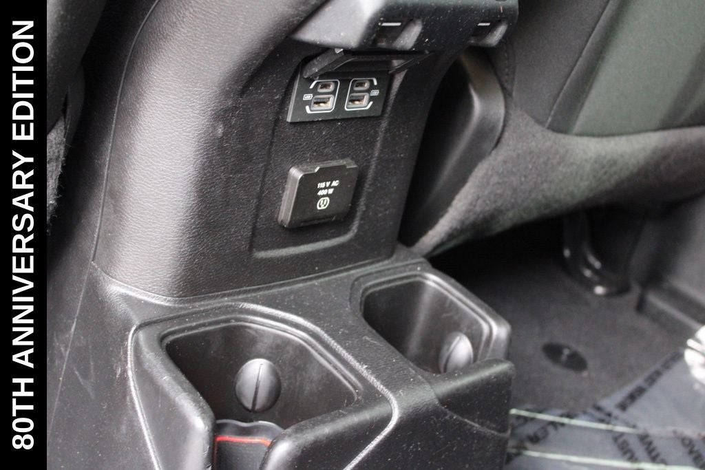 Exterior-wise, this Jeep Gladiator Sport stands out with its striking Firecracker Red Clearcoat paint, complemented by the bold body-color fender flares and grille. The 80th Anniversary edition badges and accents add a touch of exclusivity and style.