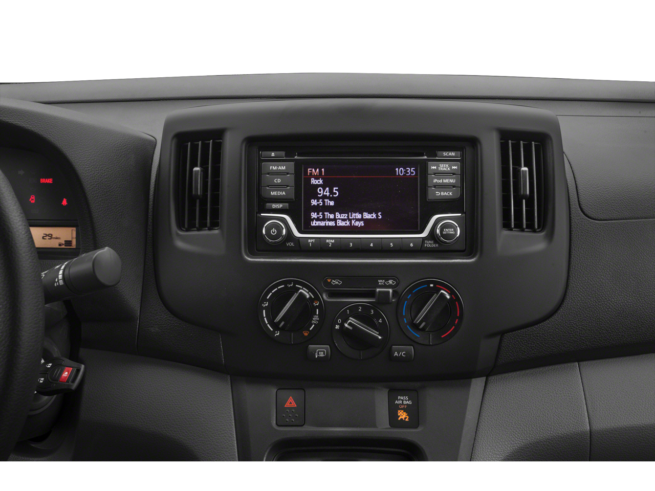 Safety is a top priority in the NV200 SV, with features like ABS Brakes, Dual Front Impact Airbags, Dual Front Side Impact Airbags, and Occupant Sensing Airbag providing peace of mind on the road. The Rear Parking Sensors and Low Tire Pressure Warning further enhance your driving confidence.