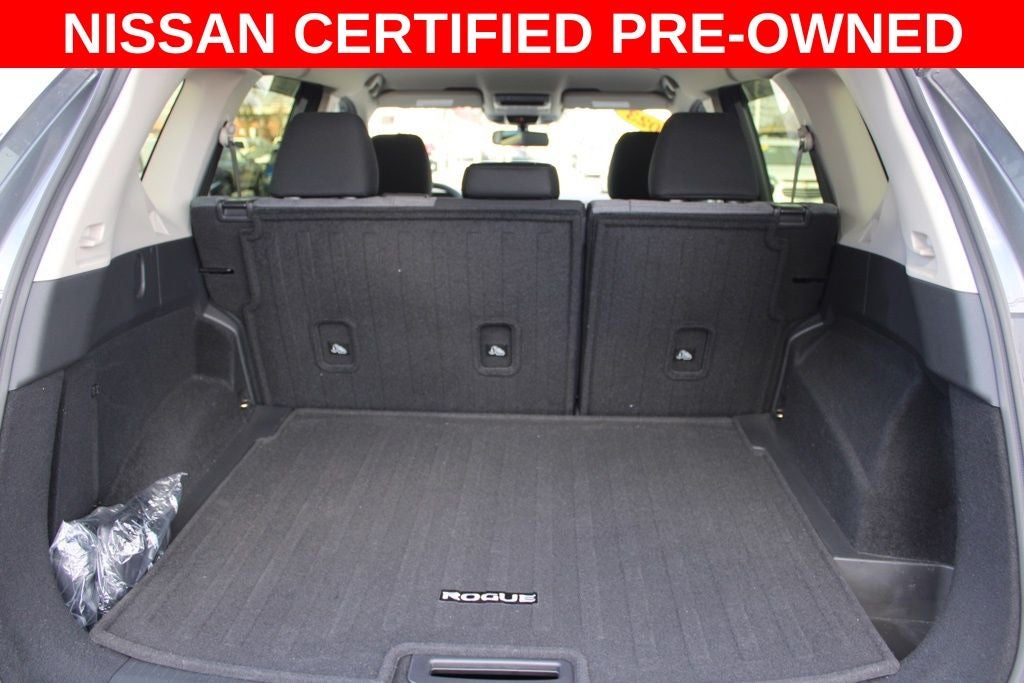 This Rogue also comes equipped with a range of premium accessories, including a Floor Mats w/1-Piece Cargo Area Protector, Black Splash Guards, and a Chrome Rear Bumper Protector, ensuring both style and functionality.