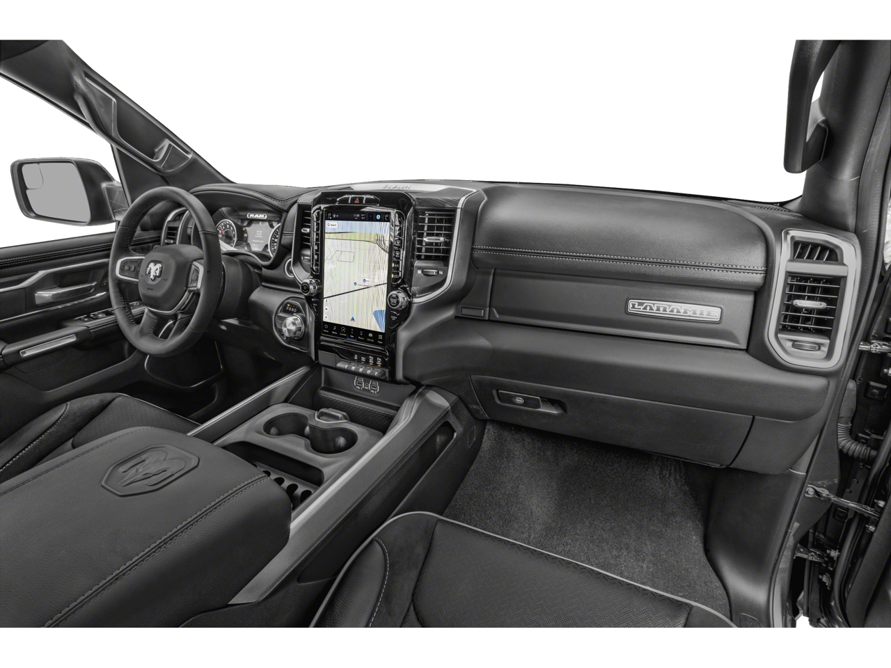 The advanced technology features of this Laramie model ensure a seamless and connected driving experience. Enjoy the convenience of the 12-inch touchscreen display with Uconnect 5 Navigation, Apple CarPlay, Android Auto, and the premium harman/kardon sound system. Stay safe and confident with the blind spot monitoring, cross-path detection, and front/rear park assist with stop.