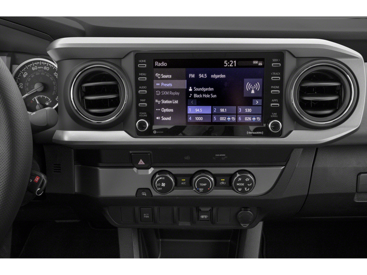 - Radio w/Seek-Scan, Clock, Speed Compensated Volume Control and Steering Wheel Controls