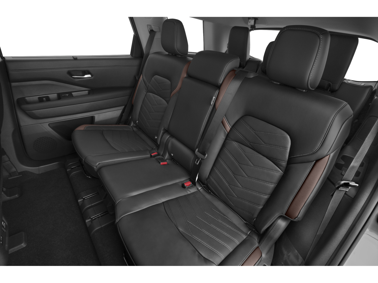 This Pathfinder Platinum also comes equipped with the Platinum Captain Chairs Package, which includes 2nd-Row Captain Chairs and 2nd-Row Rear Headrest, as well as the Cargo Package, featuring dividers, a console net, a cargo area protector, and a cargo net.